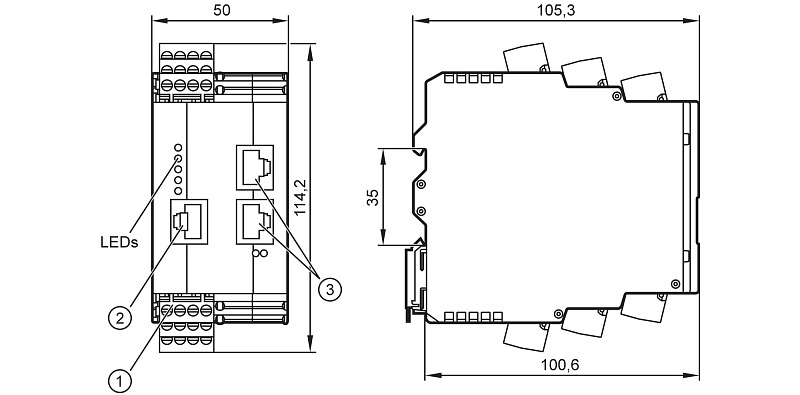 - Монтаж в систему: DIN-рейка