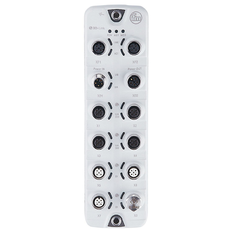 Последовательное подключение источников питания со стандартизированной L-кодированной технологией соединения M12 настраиваемое ограничение тока для каждого порта для обеспечения безопасной работы измерение напряжения и тока на каждом порту для контроля энергопотребления подключение исполнительных механизмов до 2 А возможность подключения до восьми устройств IO-Link. |