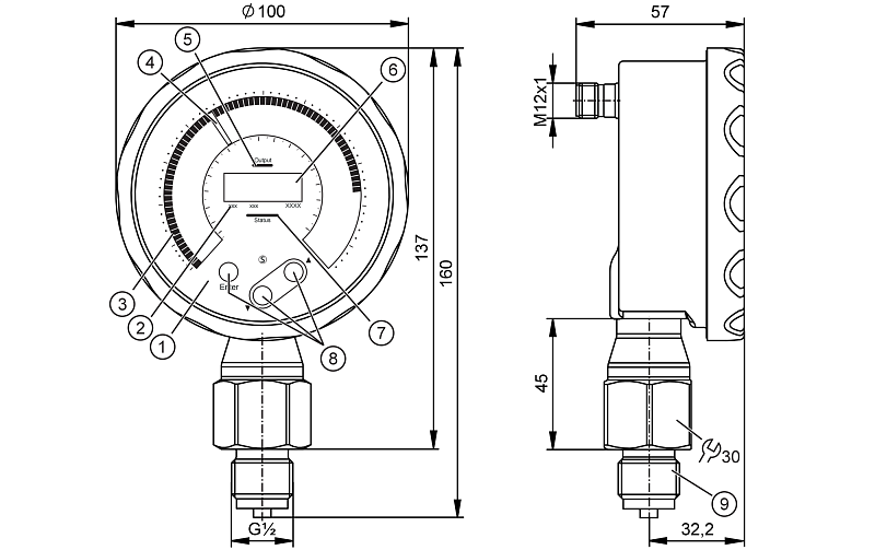 Манометрический дисплей, реле давления и преобразователь в одном устройстве Отличная читаемость даже на большом расстоянии Поворотный дисплей со светодиодной индикацией для удобной визуализации Программируемый коммутируемый выход и масштабируемый аналоговый выход Прочный корпус из нержавеющей стали для использования в суровых промышленных условиях Удобное управление с помощью кнопок или настройка параметров через IO-Link |