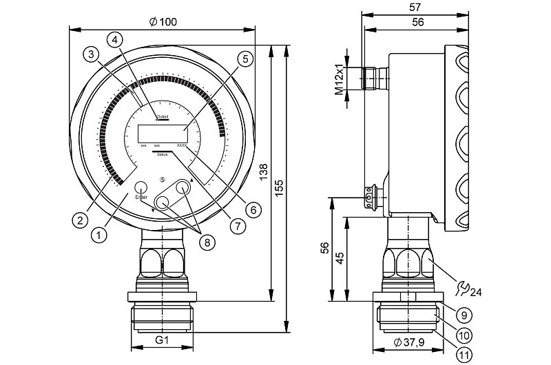 Манометр, реле давления и преобразователь в одном устройстве Отличная читаемость даже на большом расстоянии Поворотный дисплей со светодиодной индикацией для удобной визуализации Гигиеничный, прочный корпус из нержавеющей стали, соответствующий требованиям пищевой промышленности Подключение к технологической магистрали заподлицо для использования в процессах CIP и SIP Встроенное измерение температуры через IO-Link Удобное управление с помощью кнопок или настройка параметров через IO-Link |