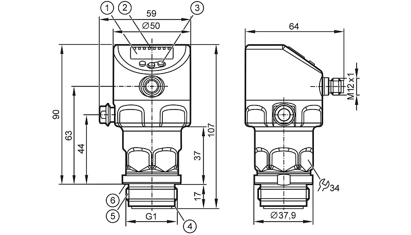Датчик давления с плоской мембраной с дисплеем PI1743 IFM