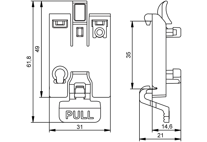 Для надежного монтажа на DIN-рейку простой, быстрый и безопасный монтаж. |