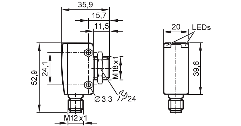 Прочный прямоугольный корпус из нержавеющей стали с резьбой M18 сбоку Устойчивость к очистке под высоким давлением с использованием агрессивных чистящих средств Высокий уровень защиты, соответствующий требованиям пищевой промышленности Готовность к работе сразу после установки Точное подавление фонового шума Удобная связь и параметризация через IO-Link |