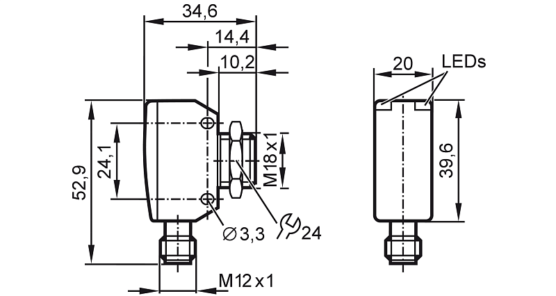 Прочный прямоугольный корпус из нержавеющей стали с резьбой M18 сбоку Устойчивость к очистке под высоким давлением с использованием агрессивных чистящих средств Высокий уровень защиты, соответствующий требованиям пищевой промышленности Готовность к работе сразу после установки Очень большой радиус действия Удобная связь и параметризация через IO-Link |
