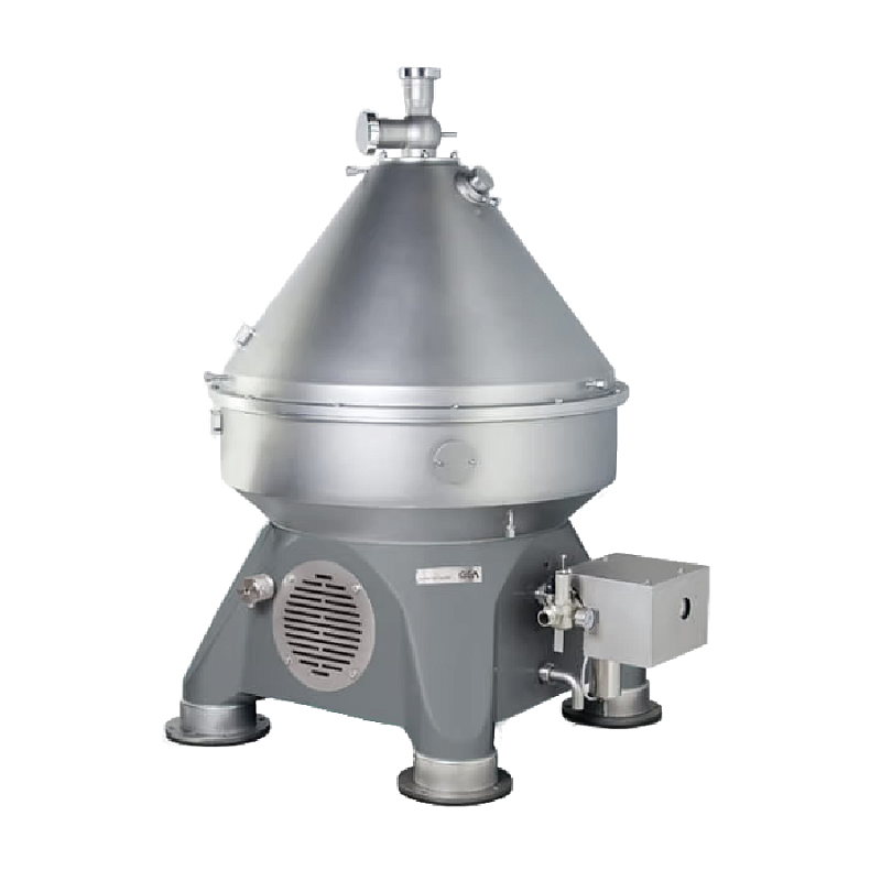 Данный сепаратор от компании GEA разработан для удаления масла из соков цитрусовых и сепарации эмульсий масла цитрусовых. Конструкция сепаратора может быть модифицирована различными способами; это позволяет приспособить ее для различных целей сепарации. Продукт входит через специальные восходящие каналы в наборе тарелок барабана. Места расположения восходящих каналов зависят от жидкого компонента, который необходимо извлечь в максимально чистом состоянии. Например, если очистке подлежит смесь воды и масла, то тяжелым компонентом является вода, и восходящие каналы должны располагаться ближе к внутренним кромкам тарелок сепаратора. При этом для сепарации легкого жидкого компонента (масла) восходящие каналы должны располагаться ближе к внешней кромке тарелок сепаратора. При необходимости получения аналогичной степени очистки обоих компонентов восходящие каналы должны располагаться в центре тарелок. Таким образом, можно полностью регулировать эффективность сепарации и качество конечного продукта. В данном случае обе жидкие фазы отводятся под давлением. Для этой цели в верхней части барабана устанавливается двойной центростремительный насос. Оба диска погружаются в разделяемые жидкие фазы и отводят их под давлением. Твердые частицы осаждаются в шламовом пространстве барабана. Данная конструкция обеспечивает трехфазную сепарацию. С его самоочищающимся барабаном сепаратор подходит для использования с CIP мойкой. |