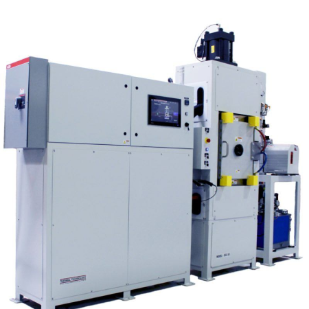 Работа в вакууме (диапазон 10^-3 Торр) и инертном газе (Ar, He, N2). Полностью автоматическое управление с помощью ПЛК и ЧМИ с сенсорным экраном. Одновременный контроль температуры и давления. Контроль температуры на основе термопары и пирометра. Быстрое циклическое вакуумирование: типично <10 минут Защита системы подачи воды и перегрева печи