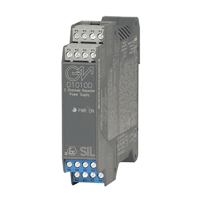 Блок питания ретранслятора SIL 2, совместимый с Smart-HART® на DIN-рейке Двухканальный повторитель питания на DIN-рейке D1010D обеспечивает полностью плавающий источник постоянного тока для питания обычных 2-проводных передатчиков 4-20 мА или отдельно питаемых 3-, 4-проводных передатчиков 4-20, 0-20 мА, расположенных в опасной зоне, и повторяет ток в плавающей цепи для управления нагрузкой в безопасной зоне. Схема допускает передачу двунаправленных сигналов связи для передатчиков HART®-Smart. Преимущества SIL2 /SC3 Вход из зоны 0 (зона 20), подразделение 1, установка в зоне 2, подразделение 2. Высокая плотность, два канала на устройство. Входной сигнал 4-20 или 0-20 мА, выходной сигнал. Широкополосная интеллектуальная связь, совместимая с HART®. Защита от короткого замыкания на входе и выходе. Высокая точность. Изоляция трех портов, ввод /вывод /питание. Совместимость по электромагнитной совместимости с EN61000-6-2, EN61000-6-4 Возможность программирования в полевых условиях с помощью DIP-переключателя. Макс. 250 Vrms (Um). допустимое напряжение для приборов, связанных с барьером. Количество каналов: 2 |