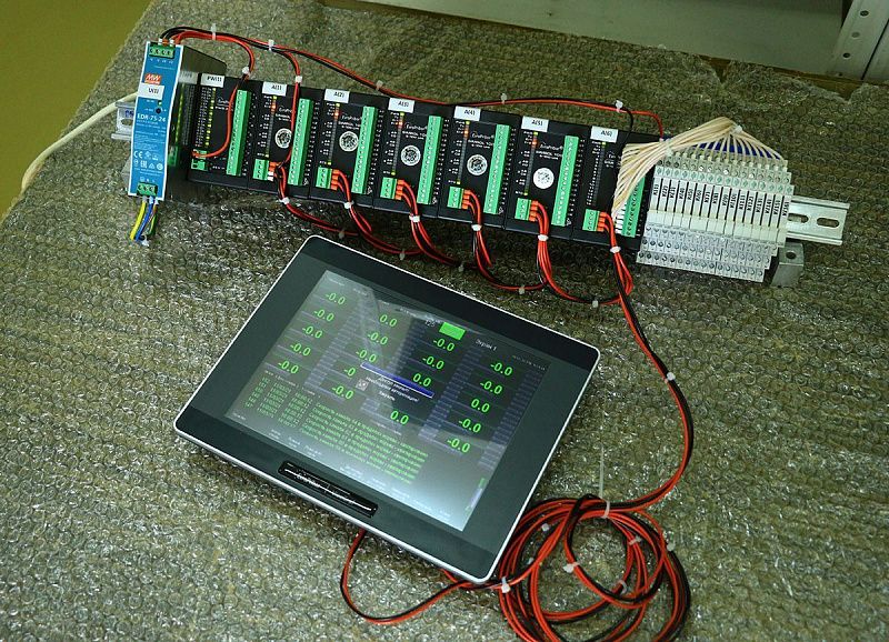 Комплекс конструктивно состоит из TFT touch screen панели оператора 4,3” (7”, 10”, 12”, 15”) дюймов и набора модулей ввода/вывода, которые конструктивно могут быть расположены как на задней стенке корпуса панели оператора, так и удаленно от нее на расстоянии до 1200 метров.