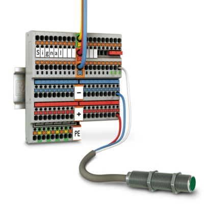 Клеммный модуль для подключения датчиков и исполнительных элементов, номинальное напряжение: 250 В, номинальный ток: 13,5 A, количество точек подсоединения: 5, тип подключения: Зажимы Push-in, Расчетное сечение: 1,5 мм2, cечение: 0,14 мм2 - 1,5 мм2, тип монтажа: NS 35/7,5, NS 35/15, цвет: cерый |