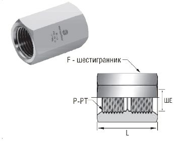 Муфты шестигранные. Резьба ISO коническая