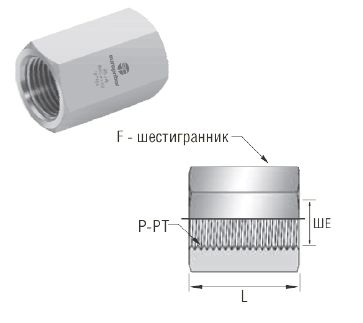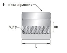 Муфты шестигранные. Резьба ISO цилиндрическая