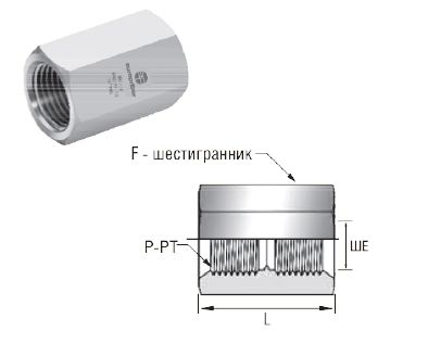 Муфты шестигранные. Резьба NPT
