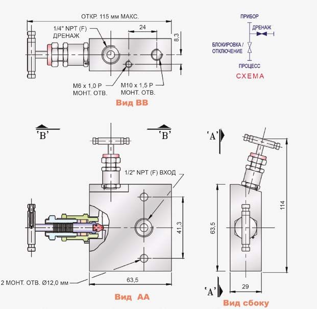 2-вентильный безфланцевый блок EUROPRIBOR для непосредственного монтажа используется для подключения импульсных линий и измерительных преобразователей системы, обеспечивает блокировку, дренаж и калибровку измерительного преобразователя давления или манометра.