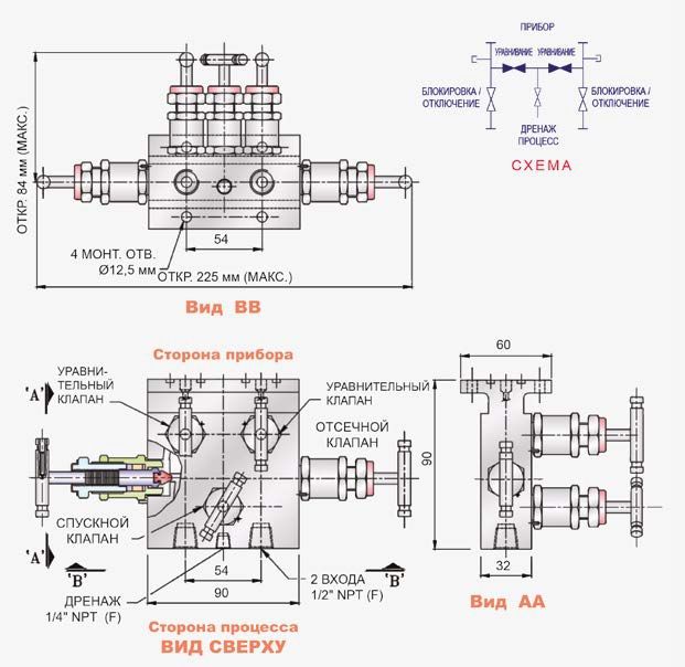 5-вентильный блок EUROPRIBOR (соединение «труба– фланец») используется для подключения импульсных линий и измерительных преобразователей разности давлений. Имеет резьбовые входы, для подключения измерительных преобразователей используется фланец.